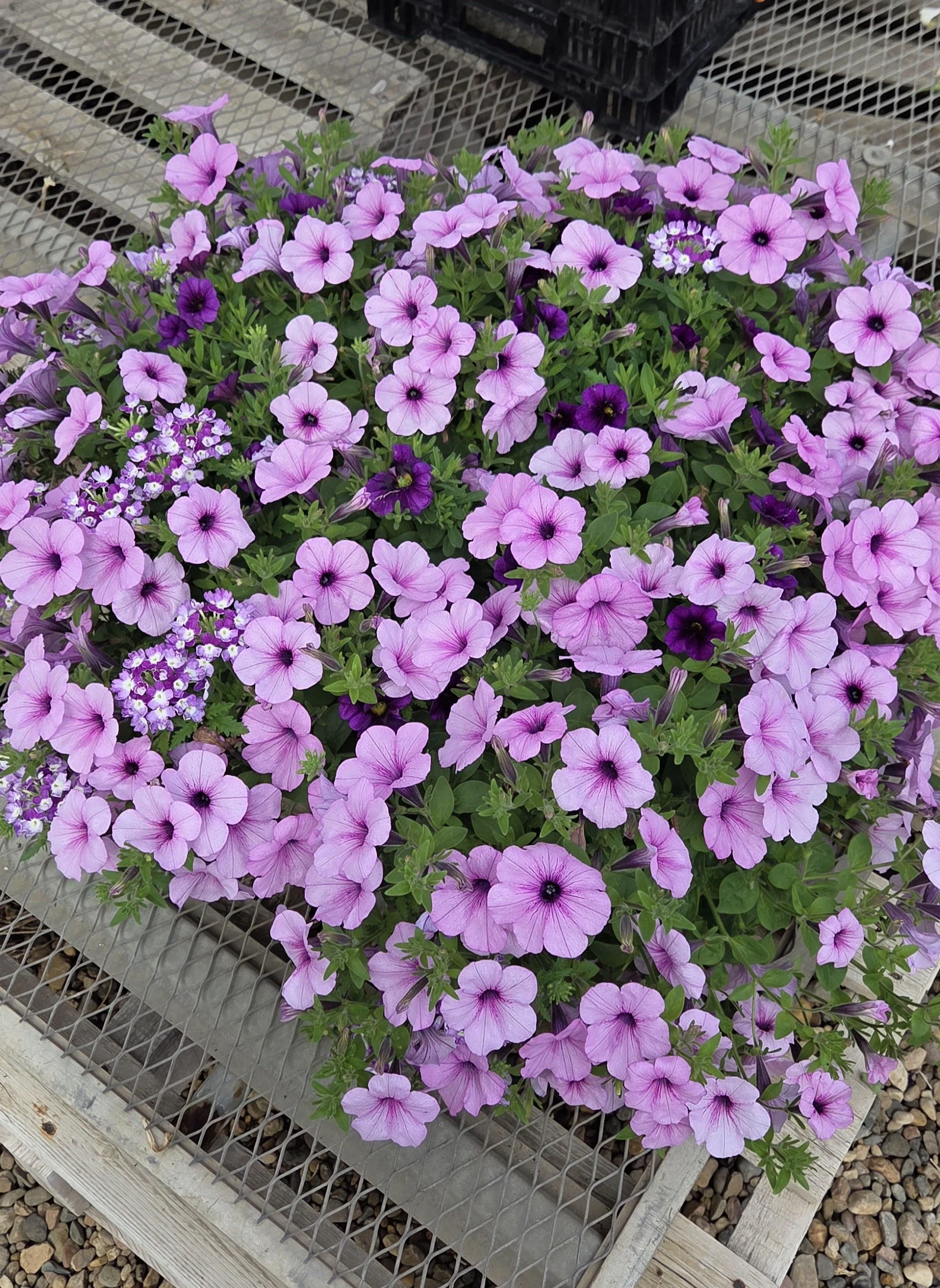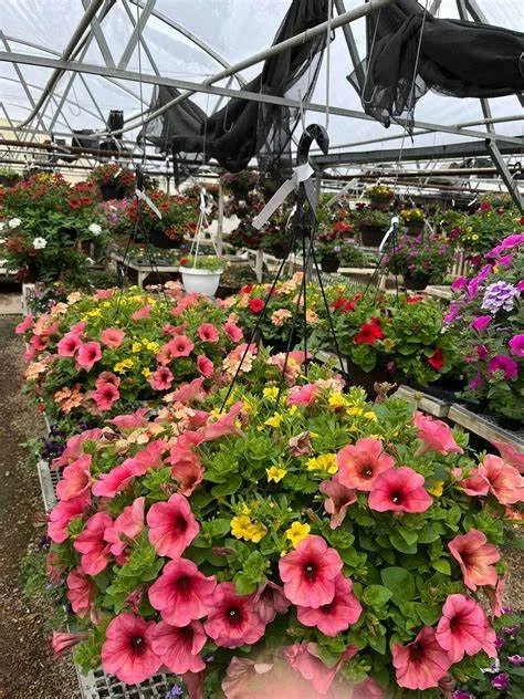 Wide selection of hanging baskets, potted plants, annuals and herbs.